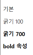 100~900 사이의 굵기 단계를 표시하는 수치값이나 normal, bold 등의 키워드로 선언할 수 있습니다.